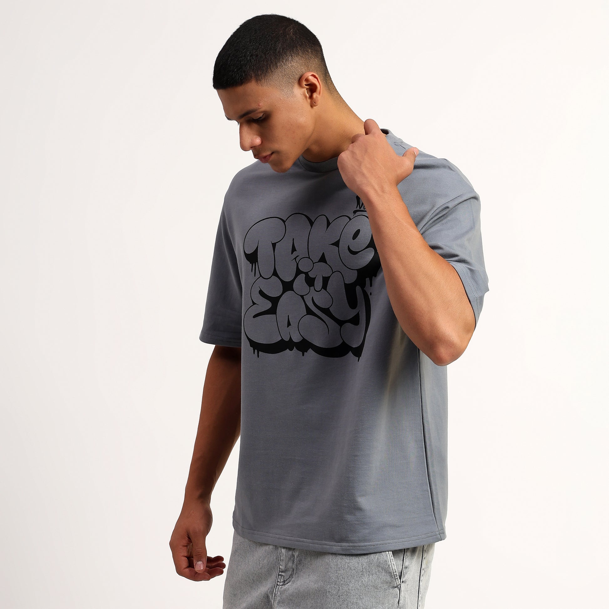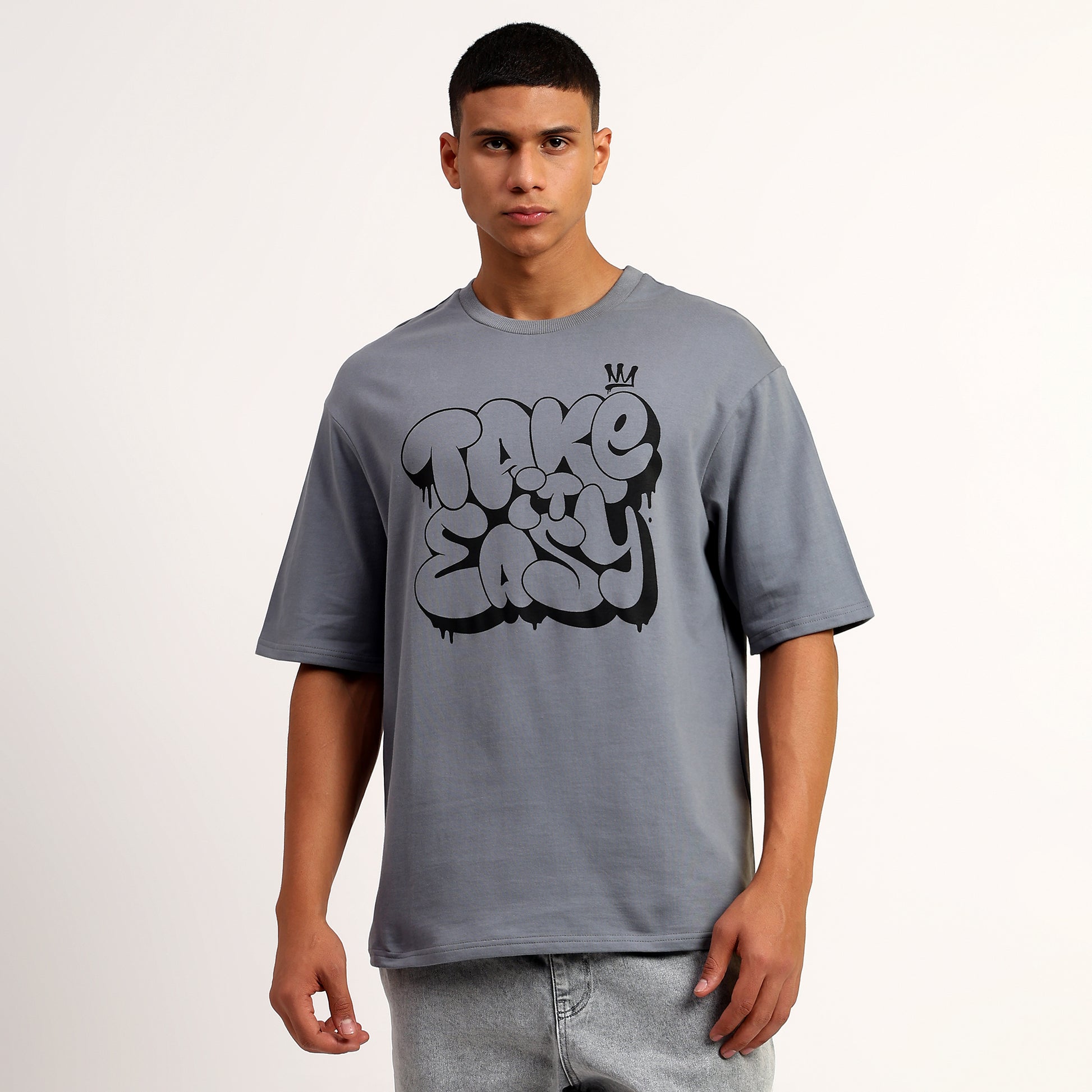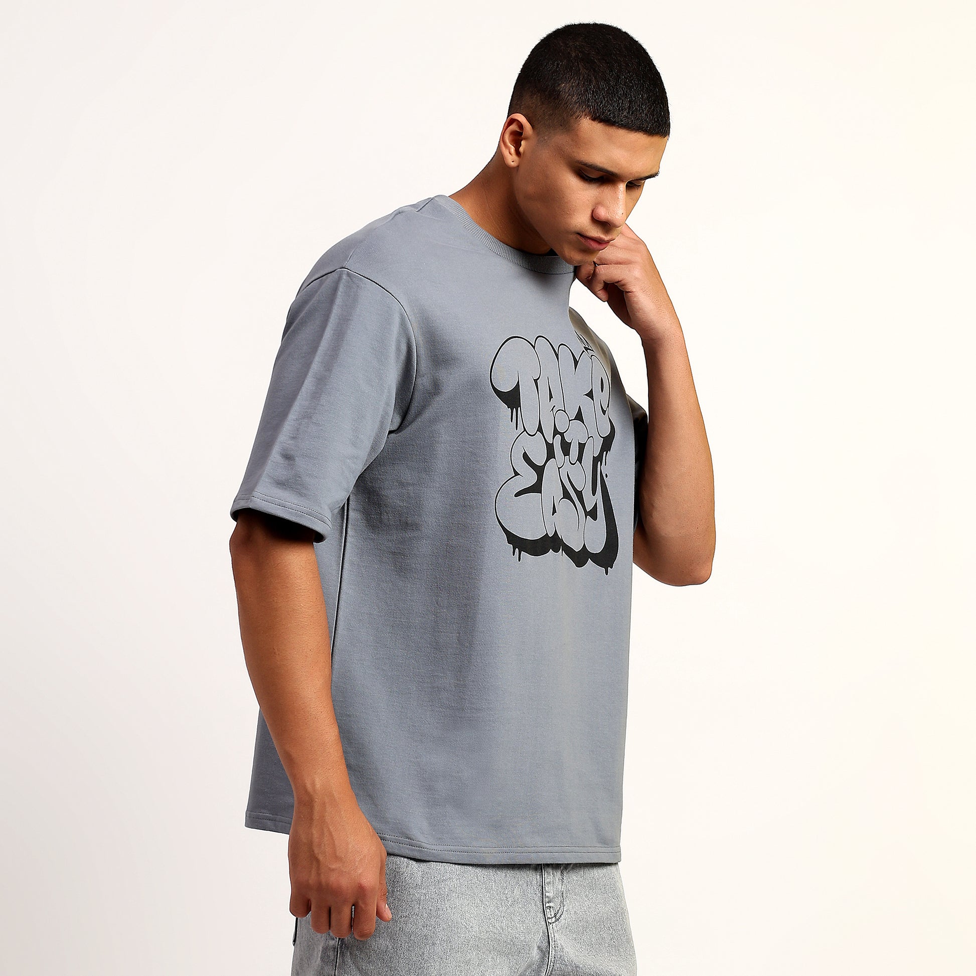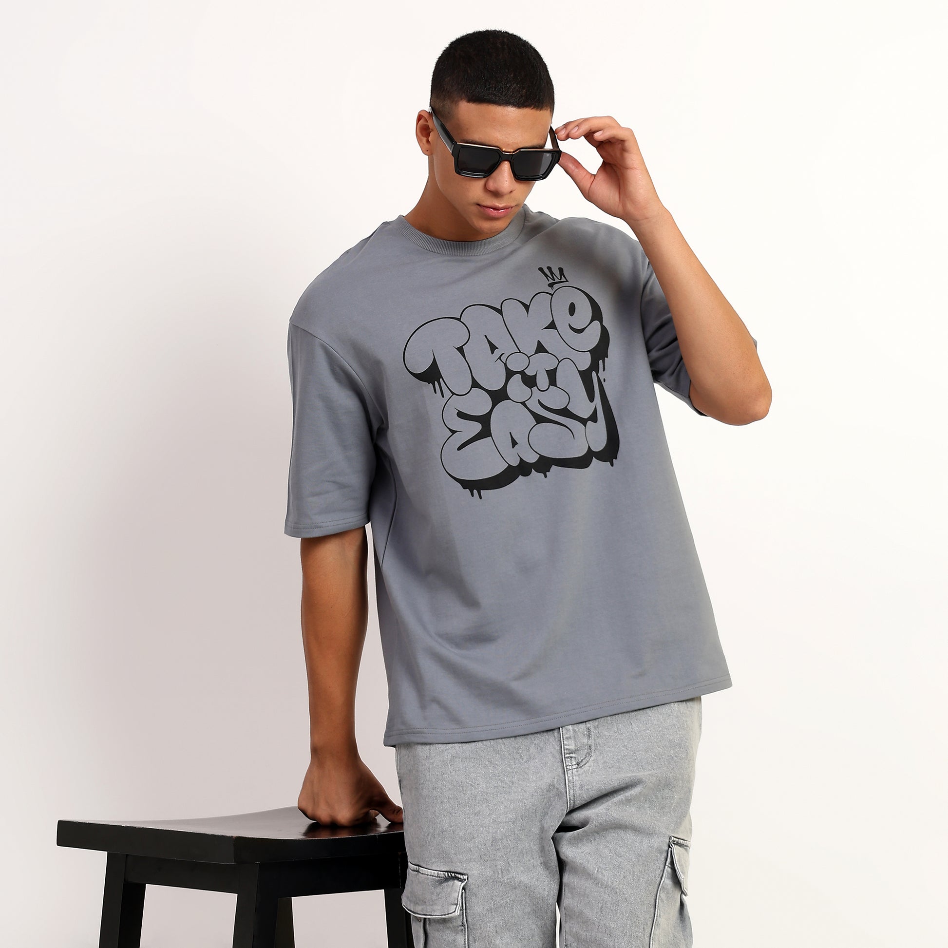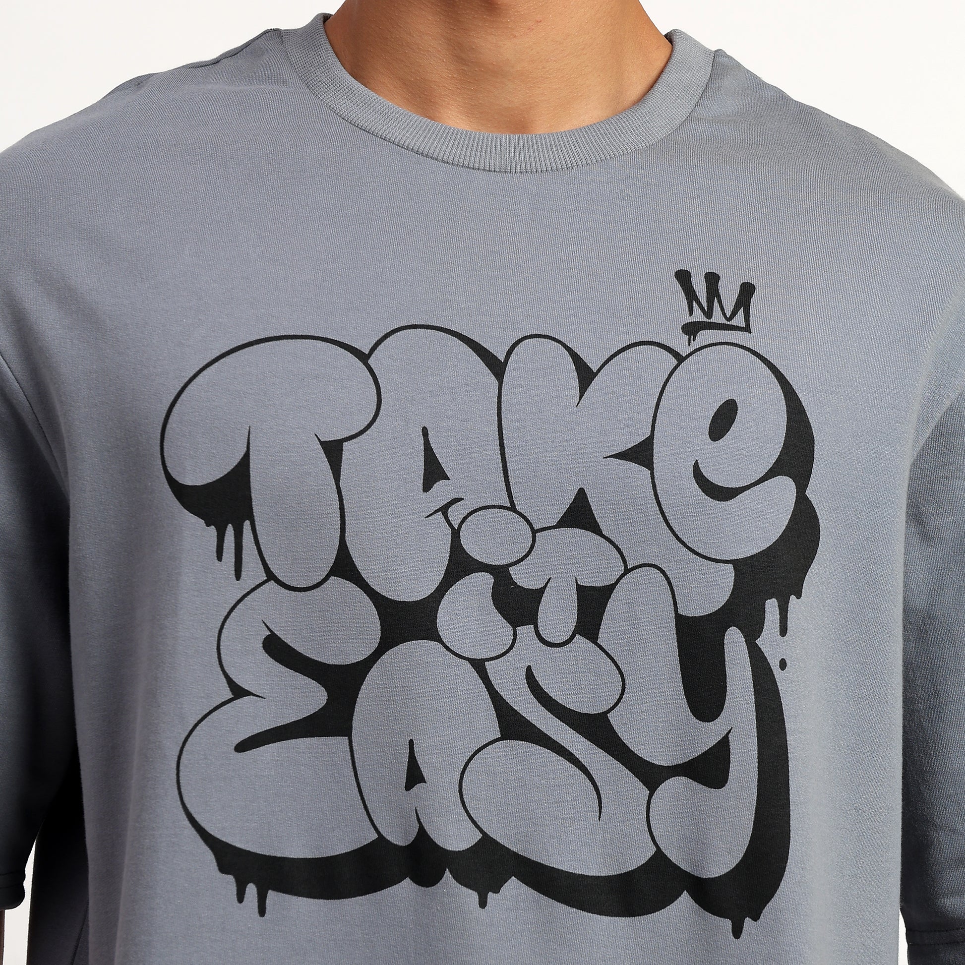 TAKE IT EASY | Oversized Regular T-Shirt – Premium Cotton | GREY