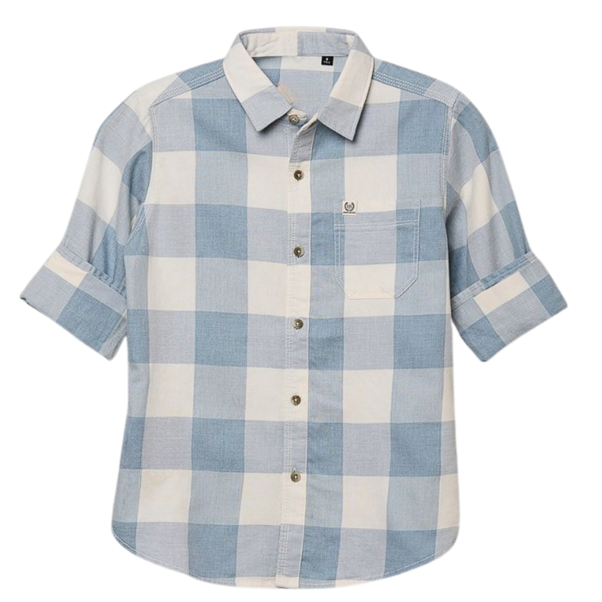 Give your kid a smart look with this checked shirt, tailored in a regular fit for all-day comfort. Featuring a classic spread collar, full sleeves, a patch pocket and a full button placket, it's finished with a curved hem for added style.