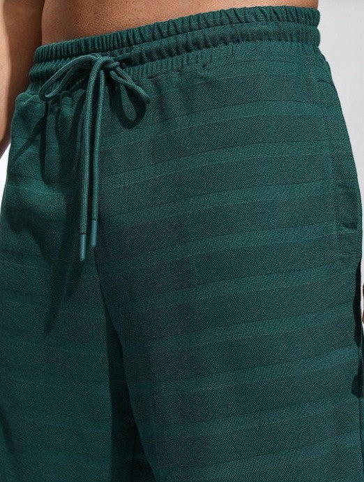 Teal self design shorts, has an elasticated waistband with drawstring closure & two pockets